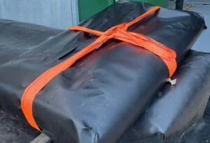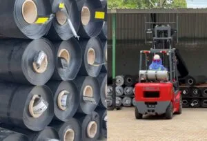 A geomembrana é armazenada em bobinas, o que facilita o transporte e evita danos no manuseio.